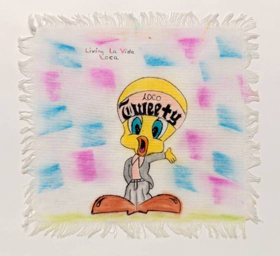 Colorful loco Tweety Bird, titled "Living la Vida Loca."