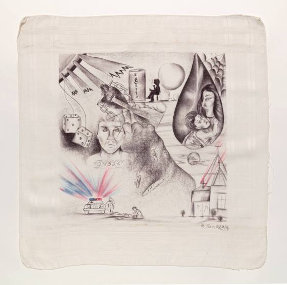 Images overall include a teardrop with mother and child, church, references to alcohol and drugs, dice, and police interaction (killing?).