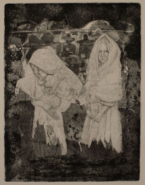Influenced by Las Adelitas of the Mexican Revolution, the artist created this etching using her daughter as the model. The composition of the figures is a visual quotation of a photograph by Agustín Víctor Casasola (1874-1938). Techniques of burnishing, scrapping, rosin, soft ground, mezzotint, dry point, and aquatint are visible throughout the image. Etching. Dimensions: 23" x 17 ¾”