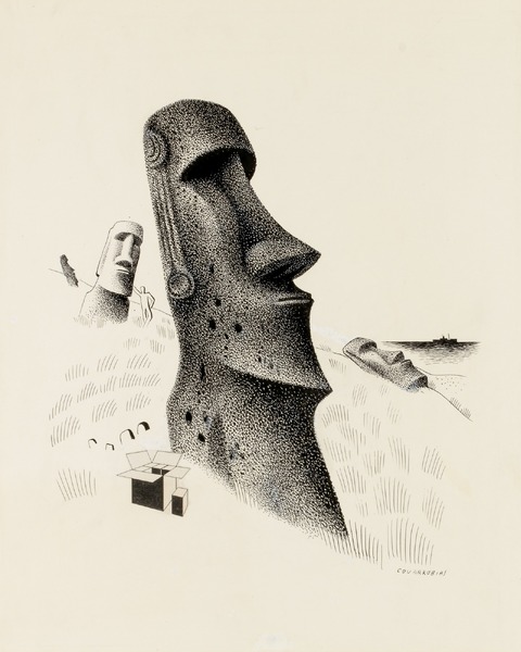 Miguel Covarrubias, No land is strange to U.S. paper packages today, from the Early Series, 1944, ink and gouache with collage on paperboard, Smithsonian American Art Museum, Gift of Container Corporation of America, 1984.124.72