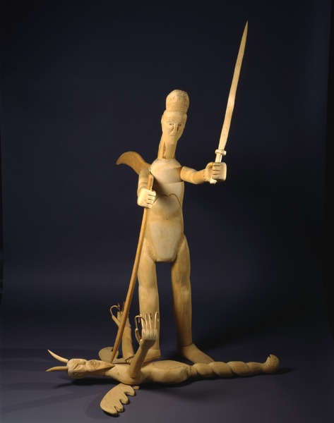 George Lopez, Saint Michael the Archangel and the Devil, ca. 1955-1956, carved aspen and Palo Duro (mountain mahogany), Smithsonian American Art Museum, Gift of Herbert Waide Hemphill, Jr. and museum purchase made possible by Ralph Cross Johnson, 1986.65.256A-H