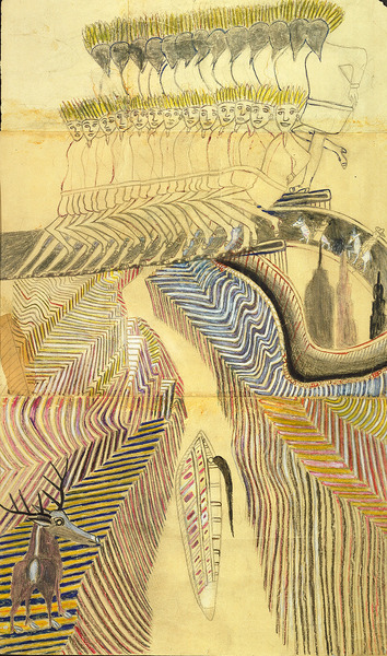 Martín Ramírez, Untitled (Chorus Line), ca. 1950, watercolor, crayon and pencil on joined papers, Smithsonian American Art Museum, Gift of Herbert Waide Hemphill, Jr., 1991.96.4R