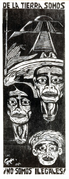 Carlos A. Cortéz, De la tierra somos !no somos ilegales!, 1984, linoleum cut on paper, Smithsonian American Art Museum, Gift of Tomás Ybarra-Frausto, 1995.50.6, © 2020, Dora Katsikakis