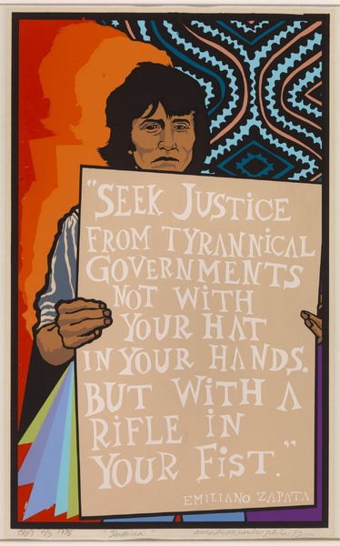 Amado M. Peña, Jr., Justicia, 1975, screenprint on paper, Smithsonian American Art Museum, Gift of Amado M. Peña, Sr. and Maria Peña, 1996.47.2, © 1975, Amado M. Peña, Jr.