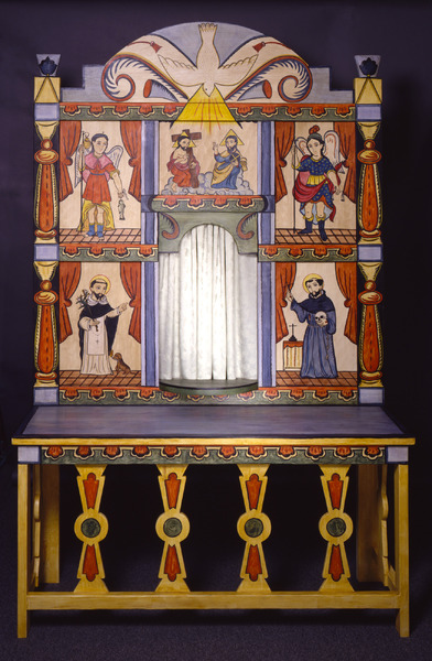 Charles M. Carrillo, Devoción de Nuevo México/Devotion of New Mexico, 1998, gesso and natural pigments on pine, Smithsonian American Art Museum, Museum purchase made possible by William T. Evans and the Smithsonian Institution Collections Acquisition Program, 1998.94A-D, © 1998, Charles M. Carrillo