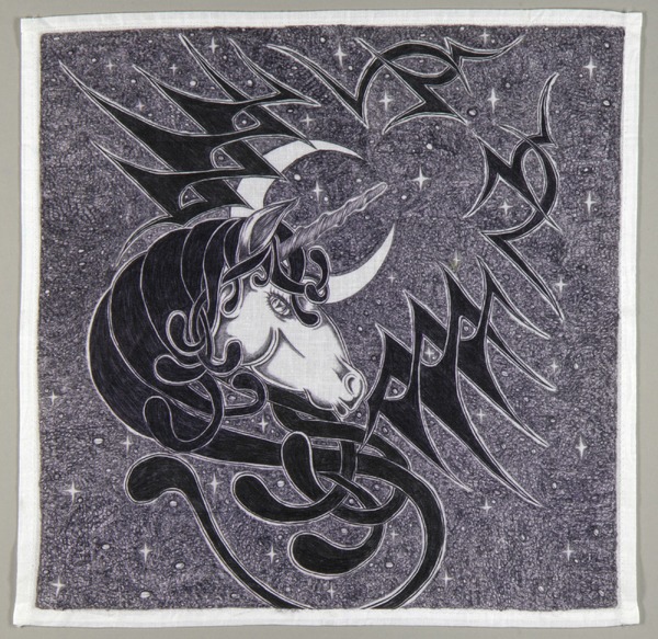Don Juanie F. Nieto, Unicorn, 1997, drawing on cotton (paño), Smithsonian American Art Museum, Gift of A. Rudy Padilla, The Hourglass Prison Art Museum, 1998.126.8