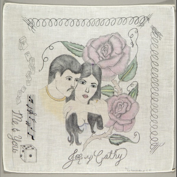 La Sonadora, Me & You, Joe y Cathy, 1987, drawing on cotton (paño), Smithsonian American Art Museum, Gift of A. Rudy Padilla, The Hourglass Prison Art Museum, 1998.126.11
