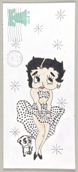 Antonio Trujillo, Envelope to Penny Caldemyer (Betty Boop and Dog), 1996, drawing on paper (envelope), Smithsonian American Art Museum, Gift of A. Rudy Padilla, The Hourglass Prison Art Museum, 1998.126.21