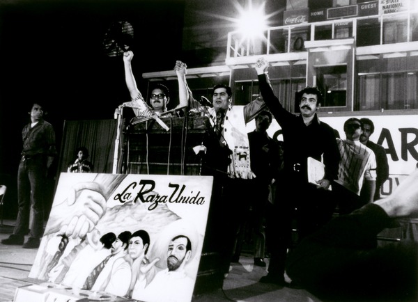 Oscar R. Castillo, José Angel Gutiérrez, Reies López Tijerina, and Rodolfo "Corky" Gonzalez at the National Convention of the Raza Unida Party, 1972, printed 2012, inkjet print, Smithsonian American Art Museum, Museum purchase through the Luisita L. and Franz H. Denghausen Endowment, 2013.51.12, © 2012, Oscar R. Castillo