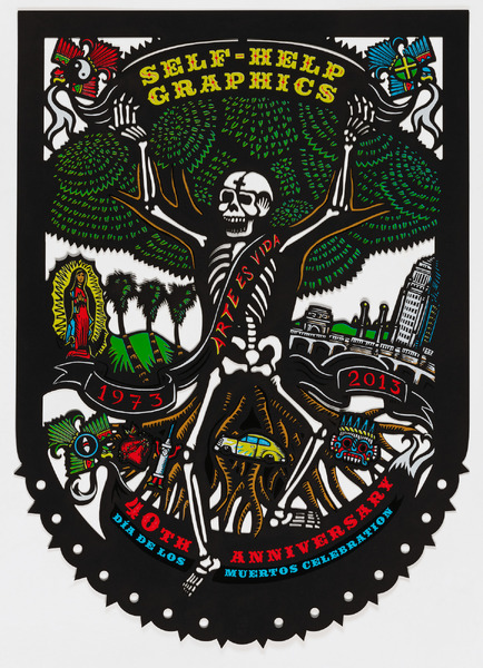 Daniel González, Arte es Vida: 40th Anniversary Dia de Los Muertos Celebration, 2013, laser-cut screenprint on paper, Smithsonian American Art Museum, Museum purchase through the Frank K. Ribelin Endowment, 2020.22.5, © 2013, Daniel González