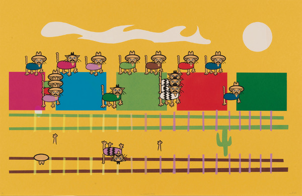 Michael Menchaca, Castigo Con Sus Amigos Encima Del Tren, 2010, screenprint on paper, Smithsonian American Art Museum, Gift of Drs. Harriett and Ricardo Romo, 2019.50.31, © MMXX, Michael Menchaca