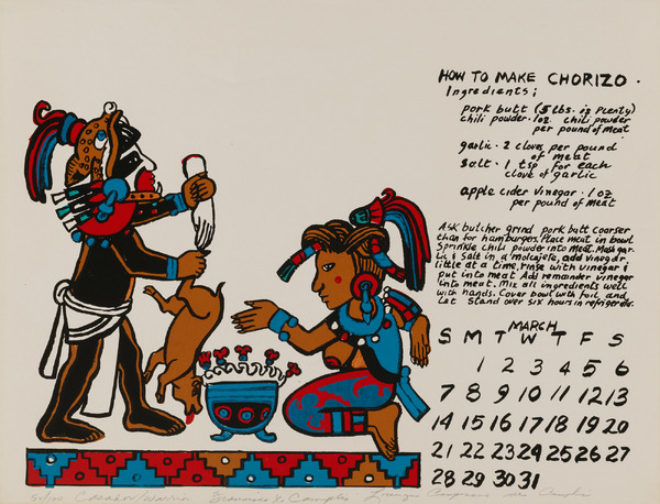 Francisco X Camplis, Lorenza Campusano de Camplis, Casador/ Warrior (March), from Calendario de Comida 1976, 1976, screenprint on paper, Smithsonian American Art Museum, Gift of the Margaret Terrazas Santos Collection, 2019.52.39