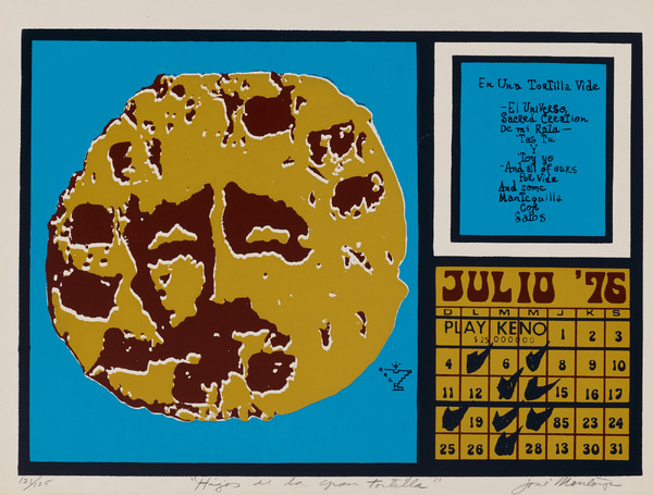 José Montoya, Hijos de la gran tortilla (July), from Calendario de Comida 1976, 1976, screenprint on paper, Smithsonian American Art Museum, Gift of the Margaret Terrazas Santos Collection, 2019.52.43
