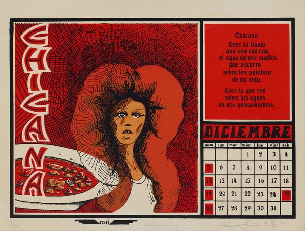 Ricardo Favela, Chicana (December), from Calendario de Comida 1976, 1976, screenprint on paper, Smithsonian American Art Museum, Gift of the Margaret Terrazas Santos Collection, 2019.52.48
